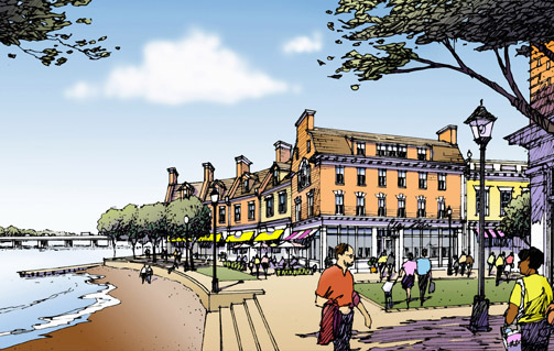 The intent was to more effectively tie Cambridge to the regional market by creating a compelling river frontage facing the primary southbound entrance to the town, a major thoroughfare linking beachside resorts further East with the major metropolitan areas of Baltimore and Washington, DC across the bay to the West, while providing the citizen’s of Cambridge with market-supported goods and services not currently available in the community.